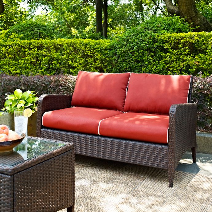 Inspiring Crosley Kiawah Loveseat Idea. Kiawah wicker outdoor loveseat with sangria cushions: Kaplan white metal outdoor loveseat with navy cushions: Get the values you want during our veterans day sale! Ratings (2) (3) (3) (0) You'll enjoy plush piped cushions, deep seats, and stylish design, making your outdoor retreat oh so inviting.